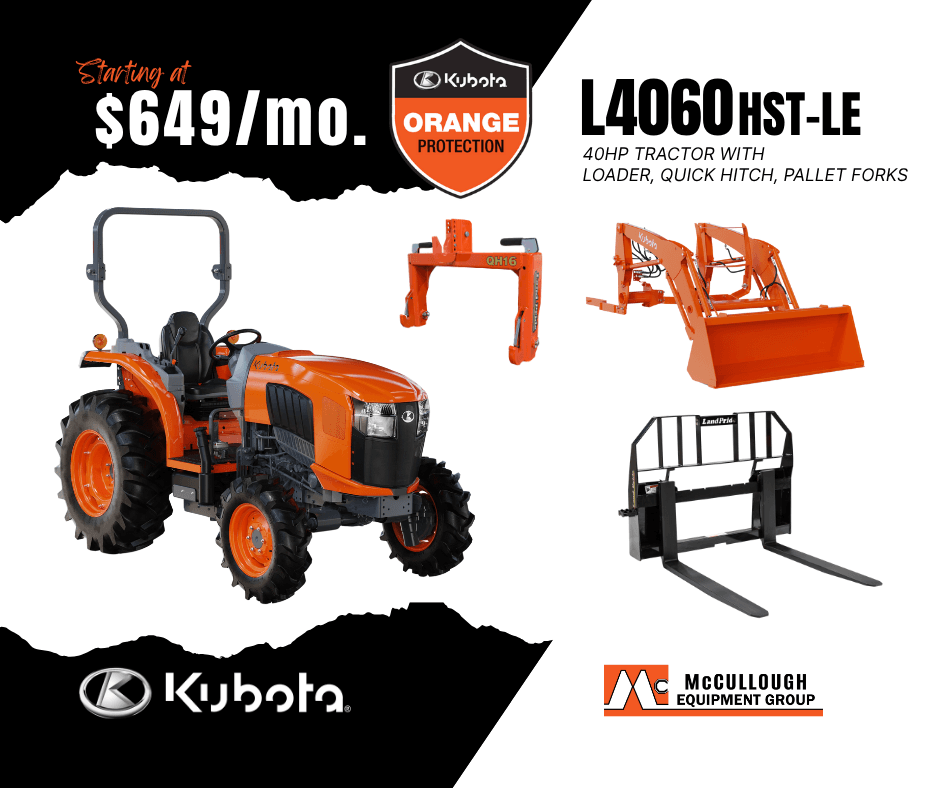 - Kubota L4060HST-LE 40HP 4WD Tractor w/ Foldable ROPS
